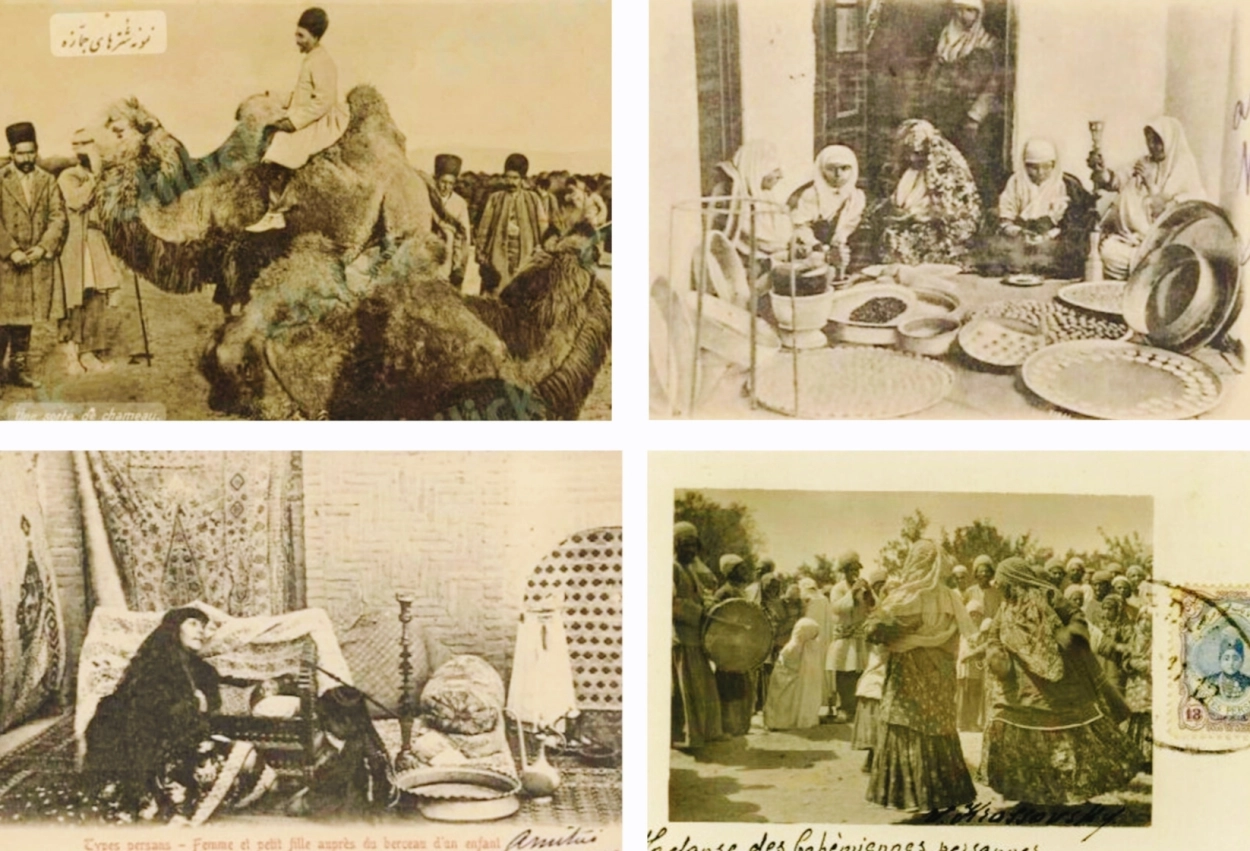 محتوای عکسهای این کارت پستالها واقعاً متنوع است. مثلاً کارت پستالی وجود دارد که زنی جمازسوار را نشان میدهد که با چادر و پوشش کامل سوار شتر است. کفش این زن برای من جالب است، چون عموم زنان طبقه محروم در عصر قاجار و حتی رضاشاه، پا برهنه بودند، اما این خانم کفش شیکی، نسبت به زمان خودش، به پا دارد که طبقه برتر ایشان را نشان میدهد. چیزهای جالب دیگری هم برای تاریخ اجتماعی ایران در این عکس هست که آنها را فاکتور میگیرم.