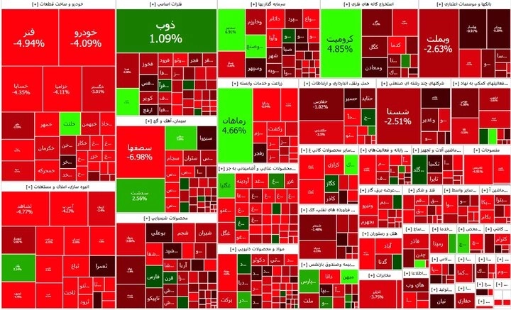 تعداد معاملات بورس ۷۹۰ هزار فقره و ارزش آن ۲۴ هزار میلیارد تومان بود. فامیلی، فولاد و شپنا بیشترین تاثیر منفی را در شاخص بورس داشتهاند.